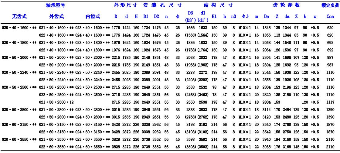 雙排球式轉(zhuǎn)盤軸承有三個座圈,鋼球和隔離塊可直接排入上下滾道,根據(jù)受力狀況,安排了上下兩排直徑不同的鋼球。這種開式裝配非常方便,上下圓弧滾道的承載角都為90°,能承受很大的軸向力和傾翻力矩。當(dāng)徑向力大于0.1倍的軸向力時,滾道須殊設(shè)計。雙排異徑球式回轉(zhuǎn)支承的軸向、徑向尺寸都比較大,結(jié)構(gòu)緊固。別適用于要求中等以上直徑的塔式起重機(jī),汽車起重機(jī)等裝卸機(jī)械上。下面宜陽龍馬軸承有限公司就雙排推力角接觸球轉(zhuǎn)盤軸承的常用型號給大家詳細(xì)介紹下,希望對大家有所幫助!